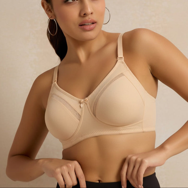 Premium cotton bra featuring a non-padded, wireless design for all-day comfort. Adjustable straps ensure a perfect fit. Made with breathable, skin-friendly fabric to keep you cool and irritation-free. Ideal for everyday wear, this comfortable bra blends support, softness, and style—perfect for sensitive skin and ultimate ease.