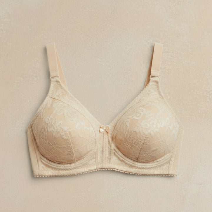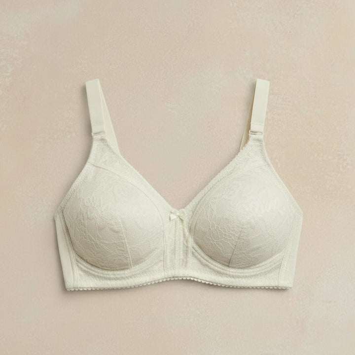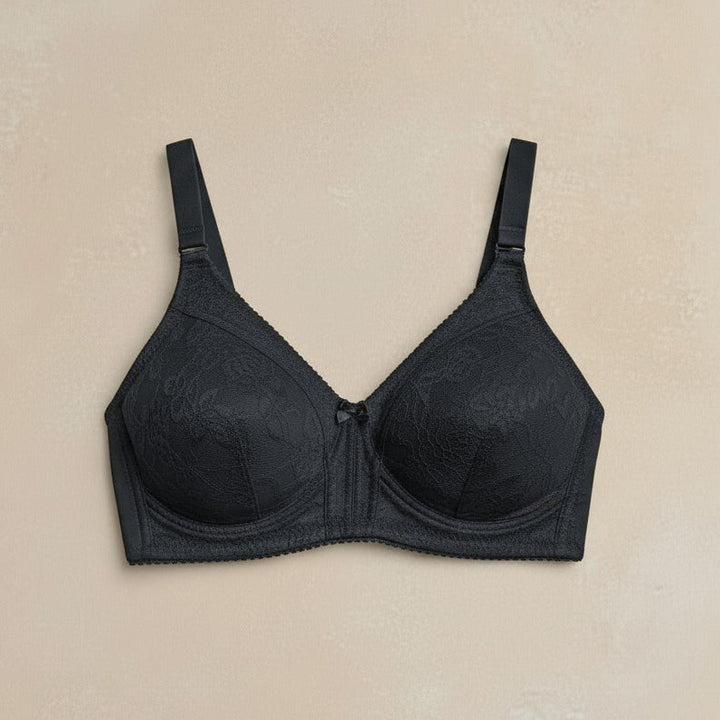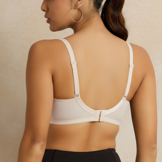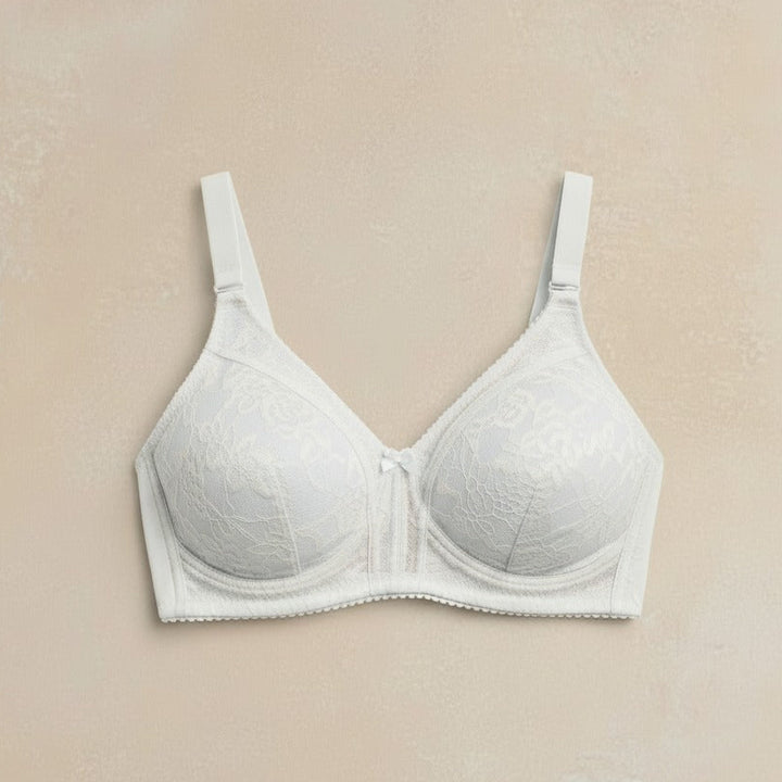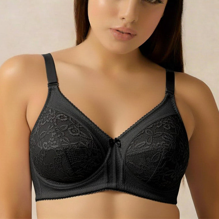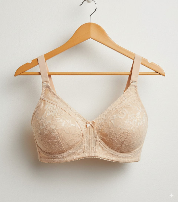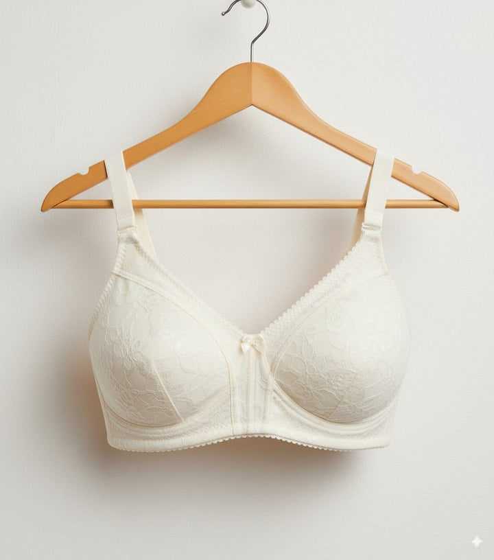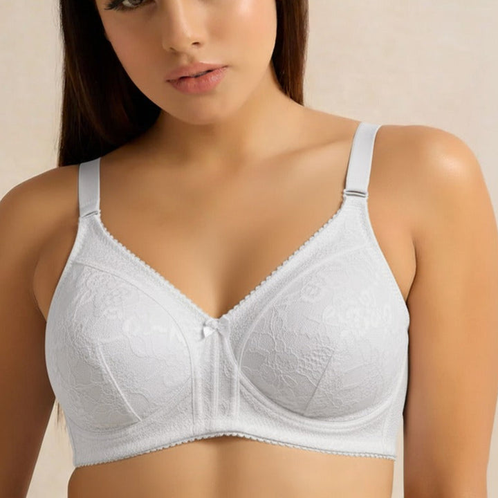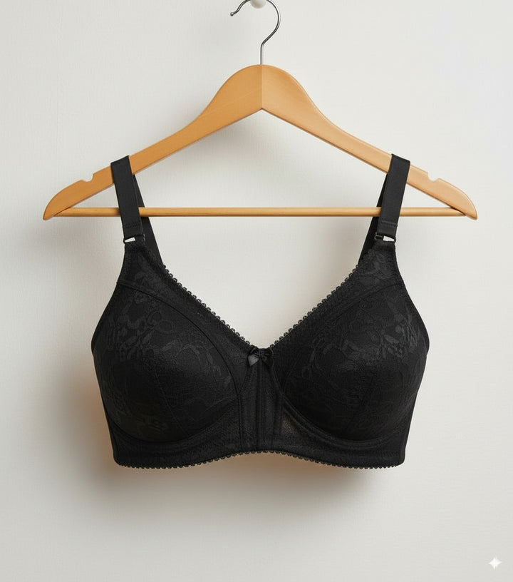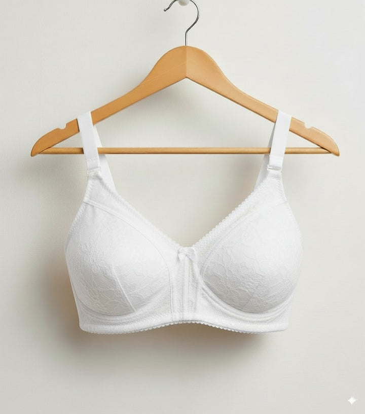 Premium Cotton Bra featuring non padded, soft wireless support, breathable fabric, and floral cup design for everyday elegance. Includes adjustable straps and 3-hook closure for a secure, customized fit. Ideal for women seeking comfort, skin-friendly material, and stylish full coverage. Perfect daily bra for sensitive skin and all-day wear.